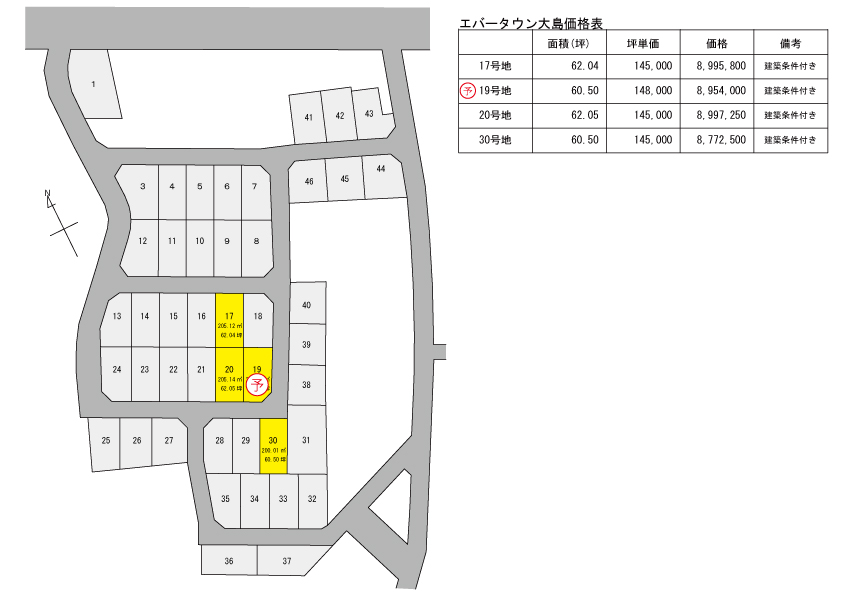 | 坪単価 | 145,000万円~ | 土地面積 | 60.50坪~ |